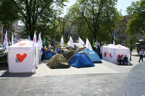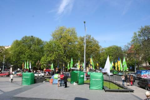 Нагадаємо, до акції протесту «Батьківщини» долучилися активісти партії «Фрон змін». Свій намір підтримати голодувальників вони задекларували 27 квітня. Сьогодні вранці 28 квітня встановили на головній площі Львові агітаційні намети.