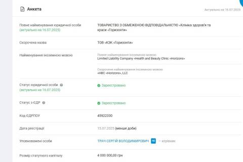 Вчора, 15 липня, за даними аналітичної системи YouControl, у Львові зареєстрували нову фірму з діяльності лікарняних закладів – ТзОВ "Клініка здоров’я та краси "Горизонти".