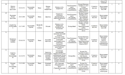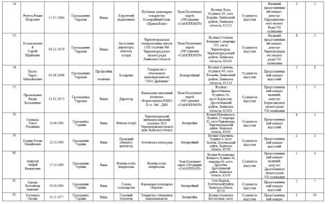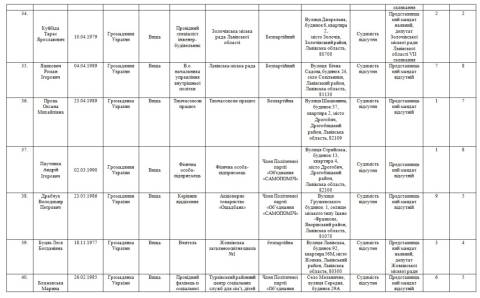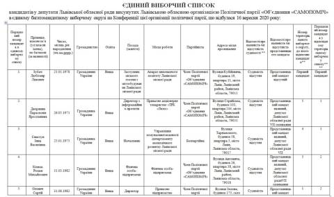 Єдиний виборчий список кандидатів у депутати обласної ради, висунутих Львівською обласною організацією політичної партії "Об'єднання "Самопоміч":