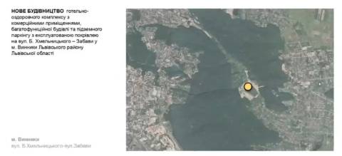 Згідно з ними, на вул. Забави – вул. Б. Хмельницького у місті Винники, зразу біля відпочинкового комплексу Emily Resort, планується збудувати готельно-оздоровчий комплекс з комерційними приміщеннями, багатофункційною будівлею та підземним паркінгом з експлуатованою покрівлею.
