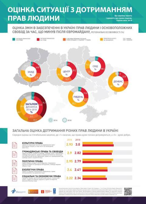 Мешканці Заходу песимістично оцінюють зміни у ситуації з правами людини, які відбулися з часів Євромайдану: лише 3% опитаних вважають, що ситуація покращилася, у той час як кожен четвертий опитаний (24%) переконаний, що з дотриманням прав людини стало гірше.