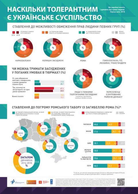Водночас значна частина опитаних жителів Заходу допускають дискримінацію і обмеження прав наркозалежних і «олігархів» (по 59% опитаних), людей, які мають непопулярні політичні погляди (наприклад, підтримують Росію) (57% готові обмежити їхні права), колишніх засуджених (53%), представників ЛГБТ-спільноти (48%).