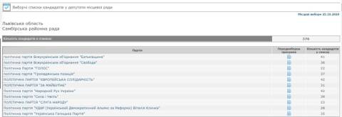 Центральна виборча комісія оприлюднила перелік політичних партій, які беруть участь у виборах до Самбірської районної ради.