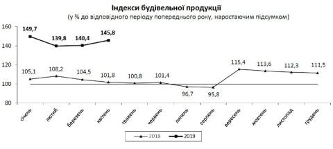 Відтак, індекс будівельної продукції у січні-квітні цього року становив 145,8%, порівняно з цими місяцями минулого року.