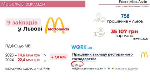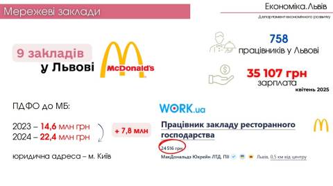 Найвищу зарплату у Львові офіційно отримують працівники мережі ресторанів McDonald’s – 35 тис. грн, натомість середня зарплата працівників холдингу емоцій !Fest ("Криївка", "Львівська копальня кави", "Правда", "Гасова лямпа", "Реберня") – понад 13 тис. грн (неофіційно – 26 тис. грн).