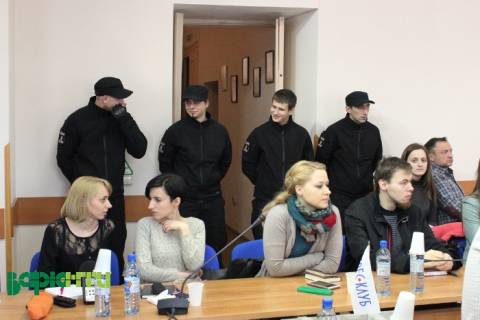 У цей час на прес-конференцію прийшов уповноважений центрального проводу Правого сектору на Львівщині Артем Луцак, який народився у Москві, виріс у Росії, а саме зараз приїхав з Польщі.