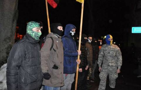 Крайній праворуч, з логотипом Правого Сектору на плечі, молодий та симпатичний хлопчик чомусь так схожий на Генріха Мхітаряна. Він косо недовіряє об'єктивам і намагається злитись невиразним у чорному.