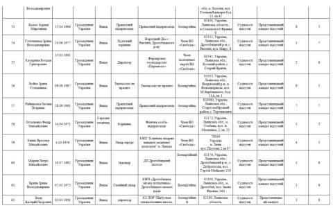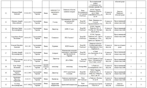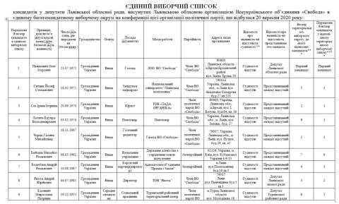 Єдиний виборчий список кандидатів у депутати обласної ради, висунутих Львівською обласною організацією політичної партії ВО "Свобода":