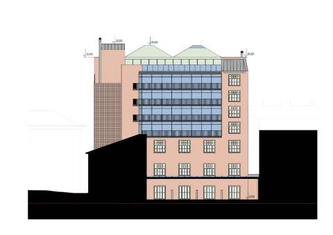 Згідно із містобудівною документацією, до 5-поверхової будівлі добудують нові поверхи та перетворять на готель, висота якого становитиме 30,4 метрів – сім поверхів та горище. Максимально допустимий відсоток забудови земельної ділянки – існуючий.