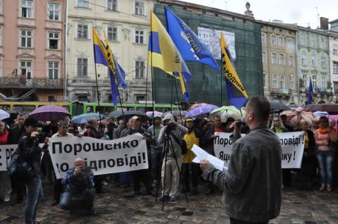 Натовп здригався та вібрував потужними криками про революцію Гідності та Майдан, про кровопролиття на Сході, про нечесність та злодіяння чиновників, свавілля власників Львівгазу та Львівобленерго, і як апогей свята популізму – презирливо плювався на кросоверні іномарки під Львівською ОДА.