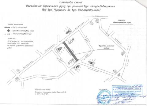 На час робіт – до 25 жовтня – буде перекрито для руху транспорту вул. І. Нечуя-Левчицького, від вул. Чупринки до вул. Котляревського.