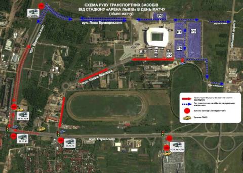 - пл. Є. Петрушевича – вул. Шота Руставелі – стадіон «Арена Львів».