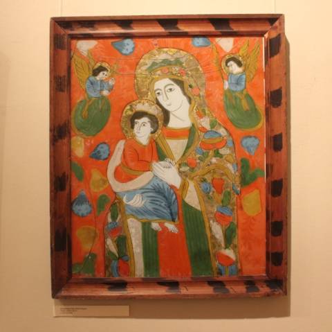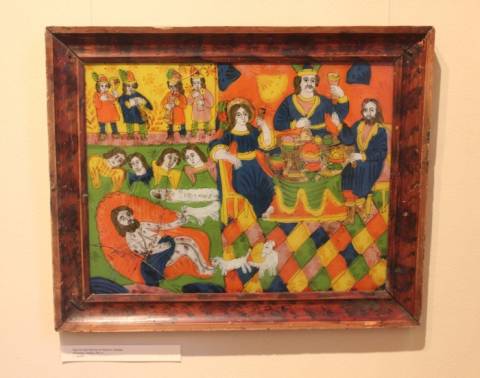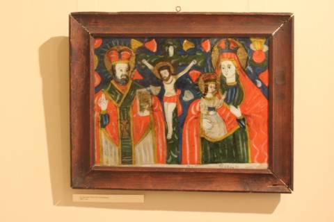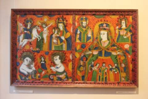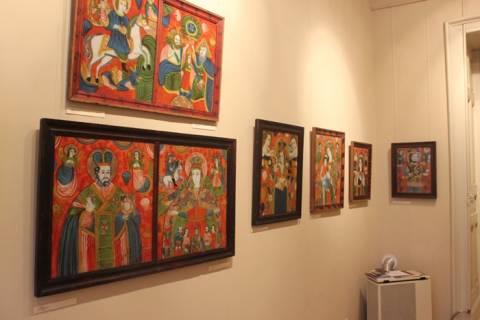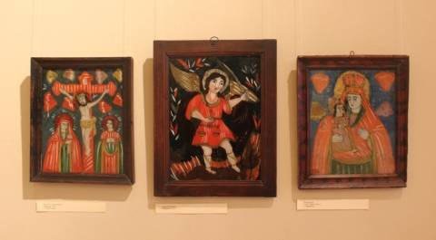 Експозиція під назвою "Червоні образи" презентує особливі зразки народного мистецтва Гуцульщини, Покуття та Буковини – ікони на склі.