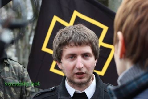 На його лівиці жовтіє логотип "Ідеї Нації" і він обіцяє поховати Путіна серед степу широкого на Вкраїні милій.