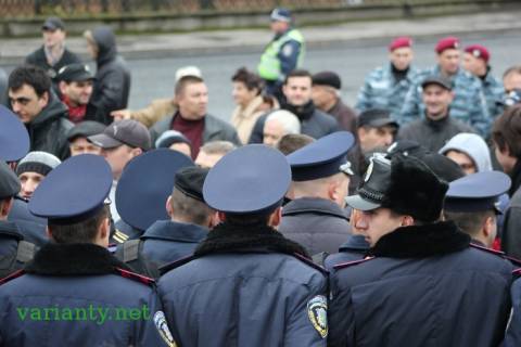 На тій зупинці боязко за свої спини лише ментам, які мають амортизувати поступ комуністів та наступ свободівців.