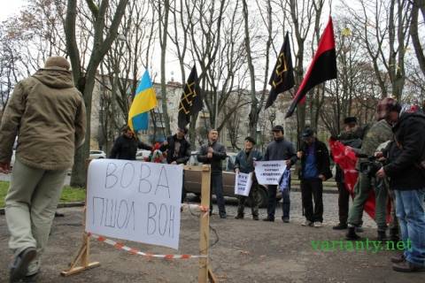 Саме вони чомусь мають спостерігати за свідоцтвом виродження більшовиків та ще й за присутності навколишніх недоумків зі "Свободи". Саме таким нерозумним словом другий секретар Львівського обласного комітету комуністичної партії України Юрій Ткаченко вказує "Свободі" на їх зайвість на цьому святі корвалолу та фуросеміду.