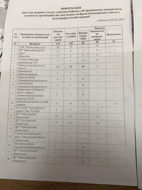 У жодній із цих заявок Державна служба України у справах ветеранів війни та учасників АТО не відмовила.