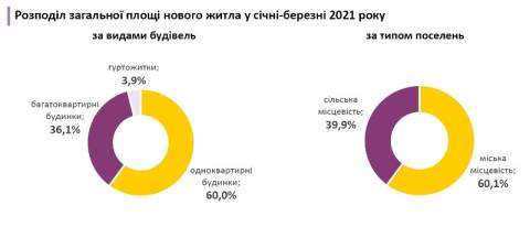 На одноквартирні будинки припало більше половини від загальної площі житла (60% або 134,3 тисяч м²), прийняття яких, у порівнянні з цими міясцями минулого року, збільшилось на 28%.