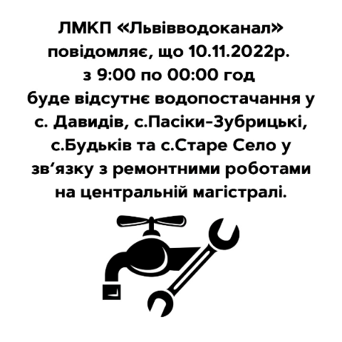 Зокрема, подачу води буде призупинено до сіл: Давидів, Пасіки-Зубрицькі, Будьків та Старе Село.