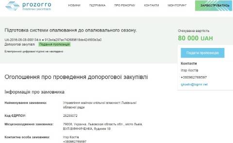 Відтак, управління майном спільної власності Львівської обласної ради проводить закупівлю на підготовку системи опалювання до опалювального сезону в адмінбудинках на вул. Винниченка, 14, 16, 18.