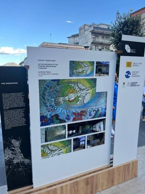 "Представили фото мозаїк та рельєфів, які у ХХ столітті створили митці з різних областей України, серед яких Віктор Зарецький та Алла Горська. Ці твори передають креативне багатство п’яти мистецьких шкіл України: Львівської, Харківської, Київської, Одеської і Закарпатської. Усі вони до початку повномасштабного вторгнення були окрасою Маріуполя. Зараз через poсiю до 90% з них знищені. Вони залишилися лише на світлинах Івана Станіславського, а сам фотограф змушений був починати життя з нуля у Львівській області" – зазначив Максим Козицький.