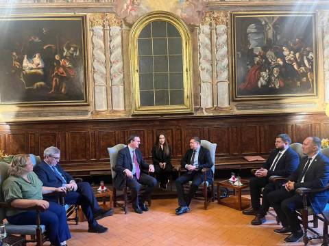Сьогодні, 11 вересня, в.о. голови Юрій Холод, начальник Львівської ОВА Максим Козицький, представник уповноваженого ВРУ з прав людини у Львівській області Тарас Подвірний, начальник Регіонального відділення Фонду держмайна України по Львівській, Закарпатській та Волинській областях Микола Іщук та депутат Северин Хобзей зустрілися з головою регіональної ради Лаціо Антонелло Аурігемма, який також наразі очолює Італійську асоціацію регіонів та автономних провінцій.