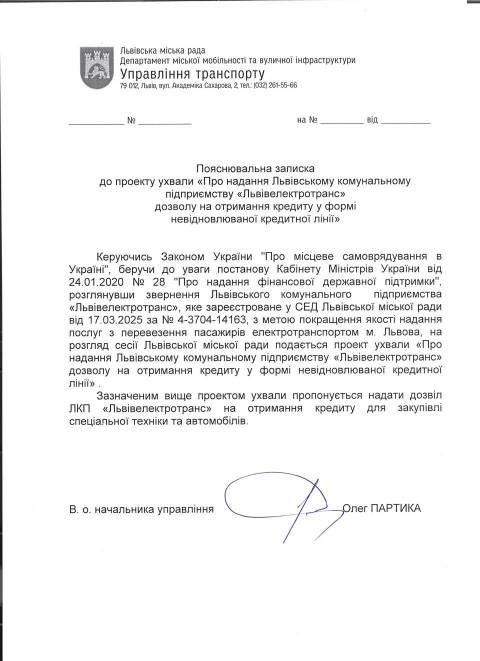 Згідно з документом, ЛКП "Львівелектротранс" планує взяти кредит для того, щоб покращити якість надання послуг з перевезення пасажирів електротранспортом Львова.
