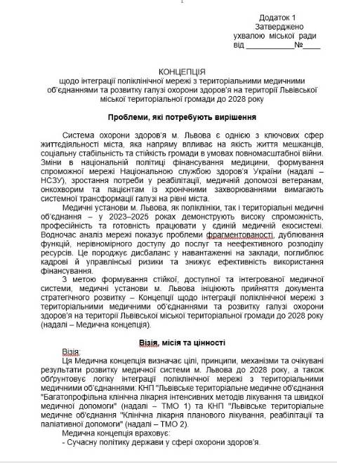 Згідно з ухвалою, затверджується Концепція щодо інтеграції поліклінічної мережі з ТМО та розвитку галузі охорони здоров’я на території Львівської МТГ до 2028 року, що передбачає