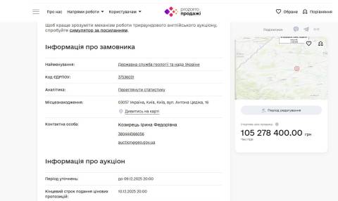 Аукціон стартує 11 грудня, а початкова вартість закупівлі становить 105 278 400 грн.
