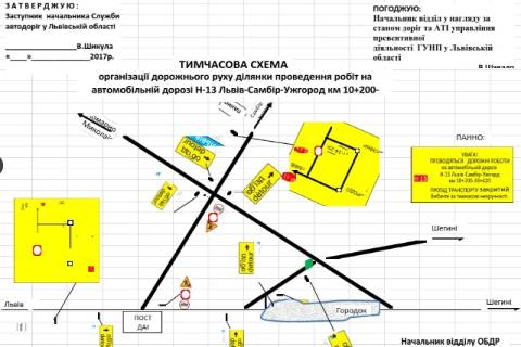 Об’їзд транспорту здійснюватиметься за маршрутом: Пустомити-Оброшине – комунальні дороги с. Ставчани – виїзд на дорогу Львів-Самбір-Ужгород та в зворотньому напрямку.