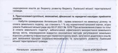 Як пояснили у міськраді, продаж цієї земельної ділянки дозволить залучити додаткові кошти до бюджету розвитку Львівської громади для реалізації програм соціально-економічного та культурного розвитку та забезпечить ефективне використання земельного фонду.