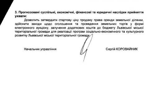 Як наголосили у міськраді Львова, ділянку здають в оренду для забезпечення ефективного використання земельного фонду Львівської МТГ, залучення додаткових коштів до бюджету розвитку громади для реалізації її програм соціально-економічного та культурного розвитку.