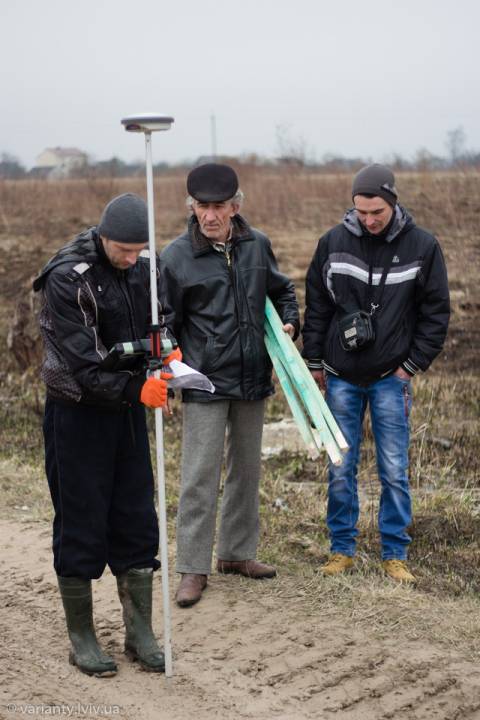 Варіантам вдалося побачити, як проходить та частина земельної процедури, що найменше пов'язана із подачею та розробкою різних документів. Ми побували при встановленні меж ділянки для учасників АТО на місцевості.