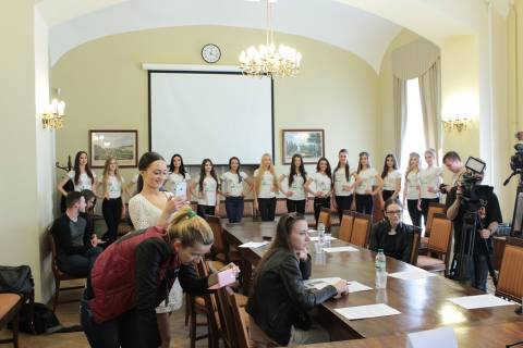 "Телефони не забудьте виключити! Переключіть на беззвучний режим – не вібро, а беззвучний!" – чуються останні інструкції, а тоді до малої сесійної зали ЛЬвівської міськради починають одна за одною заходити юні дівчата та представляти себе присутнім.