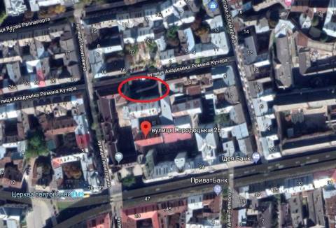 Як повідомила під час обговорення головний спеціаліст управління архітектури та урбаністики департаменту містобудування Львівської міської ради Олена Погорілець, що юридична адреса земельної ділянки вказана на вулиці Городоцькій, 26, однак проектована будівлю розсташують на задній території університетом внутрішніх справ, яка виходить на вулицю Романа Кучера.