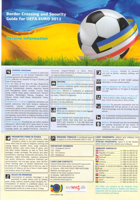 Місія Європейського Союзу з прикордонної допомоги Україні та Молдові для вболівальників до Євро-2012 видала буклет з безпеки перетину кордону.