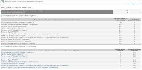 До міськради Бібрки обрали 26 депутатів від дев'яти політичних партій.