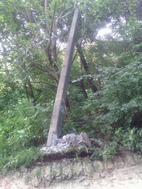 Внаслідок вчорашнього ДТП є пошкоденою опора лінії електропередач.