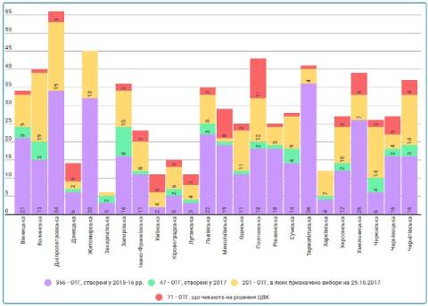 Станом на жовтень 71 об'єднана громада готова провести перші вибори цього року, а ще 50 ОТГ завершують процес об'єднання.