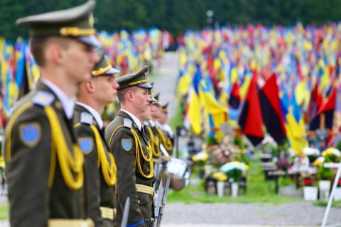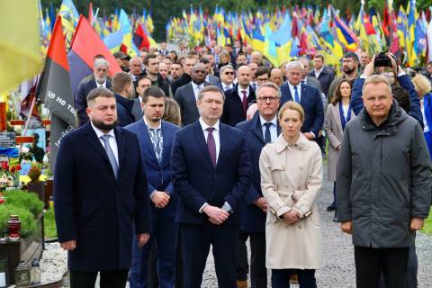 Міністри закордонних справ ЄС вшанували загиблих українських захисників на Полі почесних поховань.