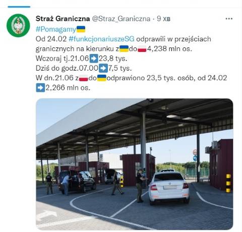 Станом на 13 червня до Польщі прибули понад 4 мільйони біженців з України, натомість станом на 18 квітня, починаючи з 24 лютого в Україну з-за кордону повернулися 1 мільйон 60 тисяч українців.