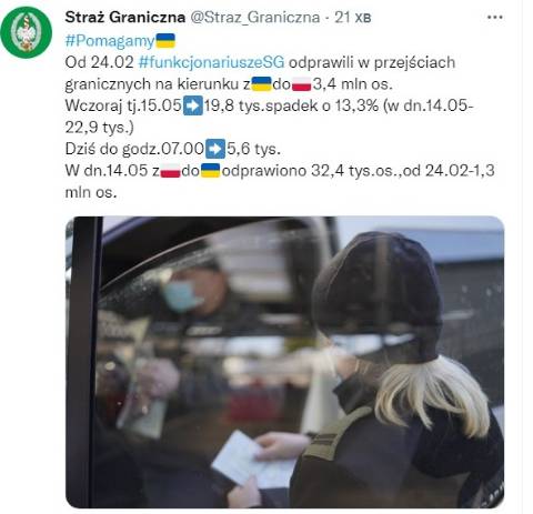 Станом на 27 квітня до Польщі прибули 3 мільйони біженців з України, натомість станом на 18 квітня, починаючи з 24 лютого в Україну з-за кордону повернулися 1 мільйон 60 тисяч українців.
