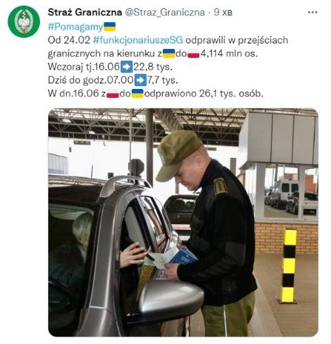 Станом на 13 червня до Польщі прибули понад 4 мільйони біженців з України, натомість станом на 18 квітня, починаючи з 24 лютого в Україну з-за кордону повернулися 1 мільйон 60 тисяч українців.