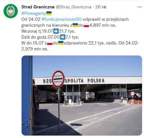 Також вчора з Польщі до України прибули 22,1 тисячі осіб, а за весь час війни – 2,979 мільйона осіб.
