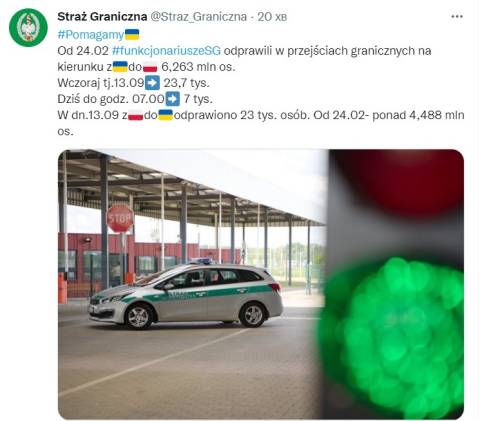 Станом на 5 вересня до Польщі прибули понад 6 мільйонів біженців з України, натомість станом на 18 квітня, починаючи з 24 лютого в Україну з-за кордону повернулися 1 мільйон 60 тисяч українців.