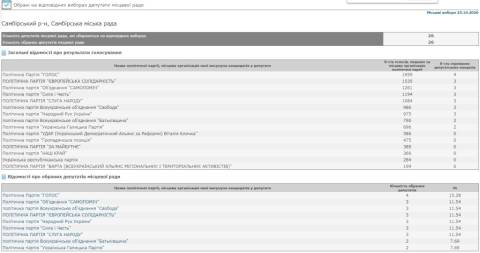 Центральна виборча комісія оприлюднила результати виборів до Самбірської міської ради.