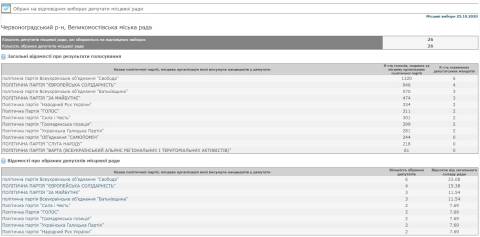 Центральна виборча комісія оприлюднила результати виборів до Великомостівської міської ради Червоноградського району.