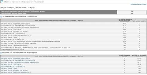 Центральна виборча комісія оприлюднила результати виборів до Яворівської міської ради Яворівського району.