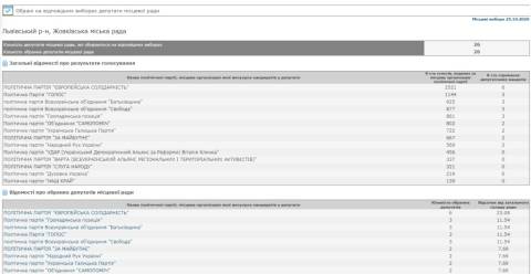 Центральна виборча комісія оприлюднила результати виборів до Жовківської міської ради Львівського району.