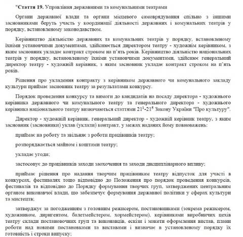 Зазначимо, згідно із законом "Про внесення змін до деяких законодавчих актів України щодо запровадження контрактної форми роботи у сфері культури та конкурсної процедури призначення керівників державних та комунальних закладів культури", художній керівник призначається на 5 років за результатами проведення конкурсу.